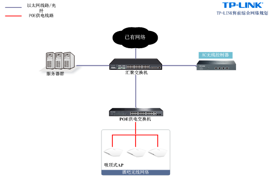 方案使用宇訊智能商用無線產(chǎn)品實(shí)現(xiàn)覆蓋,采用無線控制器AC和FIT AP的方式進(jìn)行部署。有如下特點(diǎn):