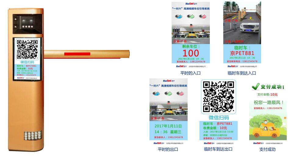 配置LCD屏的高速車牌識別道閘一體機, 既支持掃碼付, 還可播放廣告。