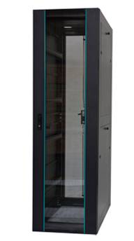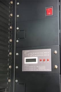 智能送風(fēng)機(jī)柜,包括柜體、傳感器、風(fēng)機(jī)和控制器、空壓倉。風(fēng)機(jī)安裝在柜體底部,正對著空壓倉的位置,其具有快速降溫能力,風(fēng)機(jī)抽取靠近地表的空氣,溫度是低于機(jī)房空間溫度,能從物理角度上更好地帶走機(jī)柜內(nèi)部的熱源。柜體內(nèi)設(shè)備用一帶網(wǎng)孔的隔板相隔,將箱體分成設(shè)備區(qū)和空壓倉,風(fēng)機(jī)不停的送入風(fēng)量使空壓倉具備一定的氣壓,氣壓通過隔板的網(wǎng)孔,進(jìn)入柜內(nèi)設(shè)備區(qū),快速帶走設(shè)備熱源,經(jīng)過頂板和后門的網(wǎng)孔散向柜外。其傳感器安裝在箱體內(nèi)上、中、下位置,所述傳感器的底部設(shè)有可任意調(diào)節(jié)角度的金屬軟支架,隨時檢測機(jī)柜內(nèi)進(jìn)風(fēng)口與出風(fēng)口的各個位置的溫度。其柜體的前門,采用三點(diǎn)式連桿式門鎖,并配有高彈性密封條,保證箱體的前門與機(jī)柜隔板間形成密封空壓倉,空氣不能從前門間隙漏出,使空壓倉的壓力隨柜內(nèi)溫度高低而變化,達(dá)到節(jié)能效果。柜體的后門和頂板開有若干散熱網(wǎng)孔。