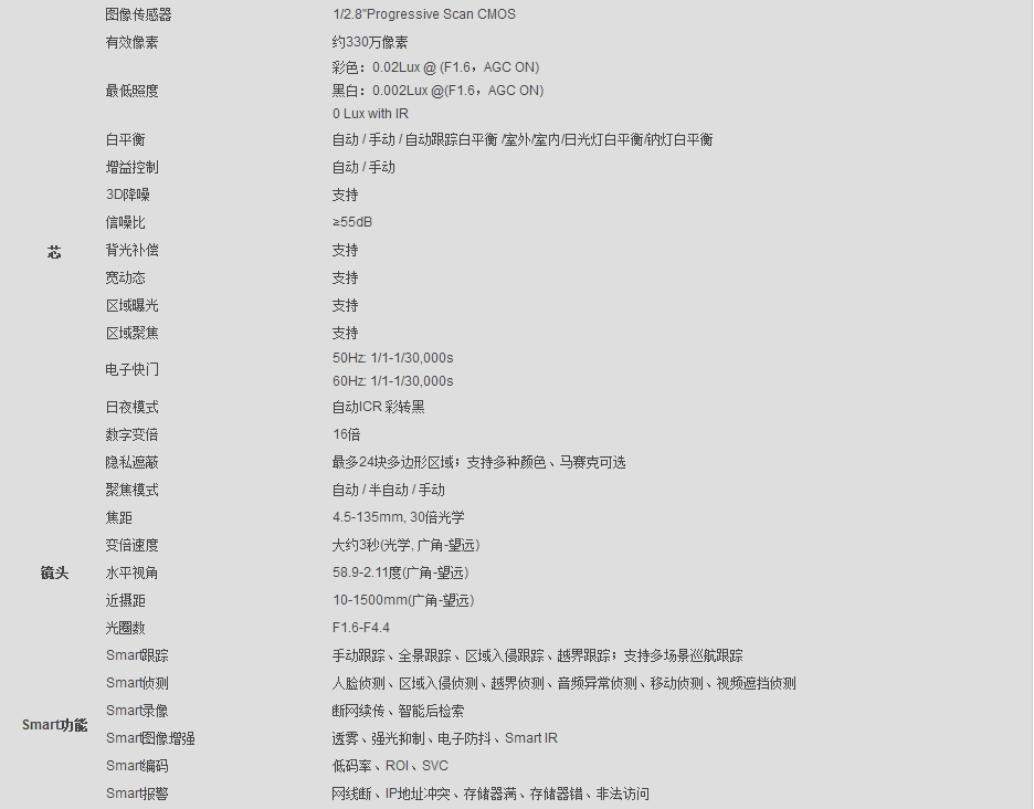 ? 支持超低照度,0.02Lux/F1.6(彩色),0.002Lux/F1.6(黑白) ,0 Lux with IR