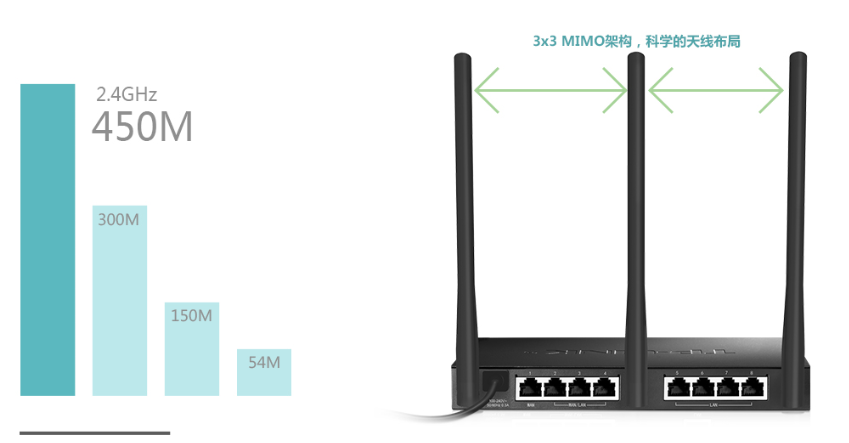 · 3x3 MIMO架構(gòu),無(wú)線(xiàn)傳輸速率高達(dá)450Mbps